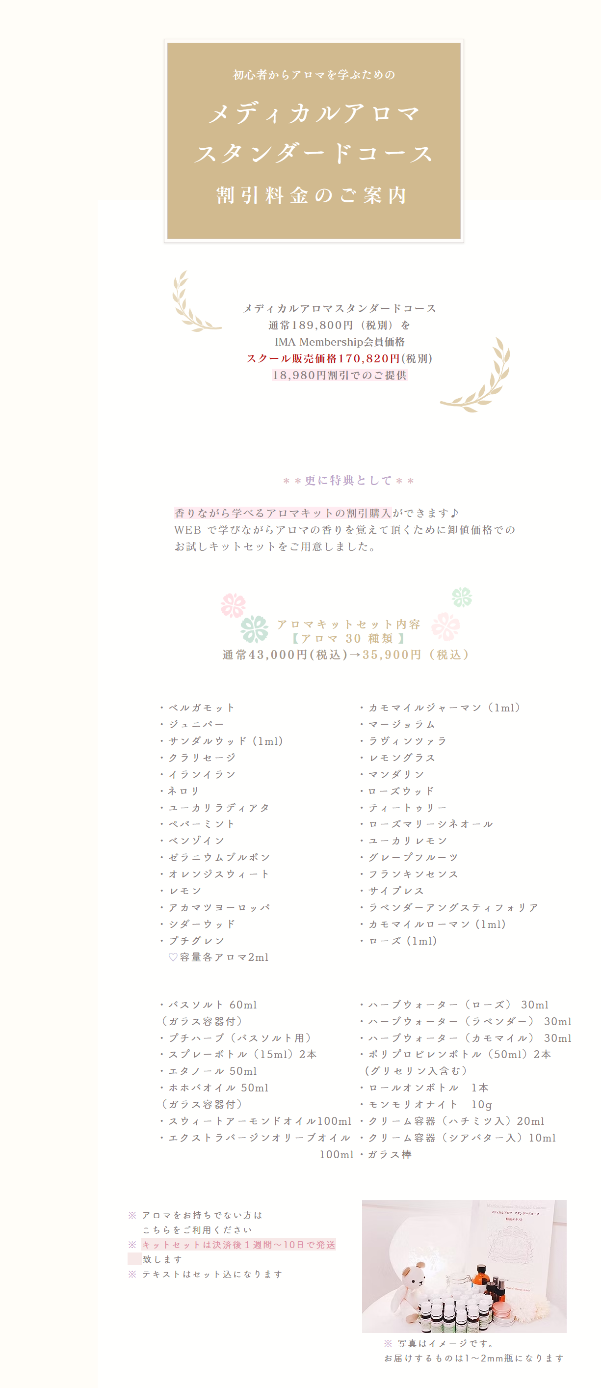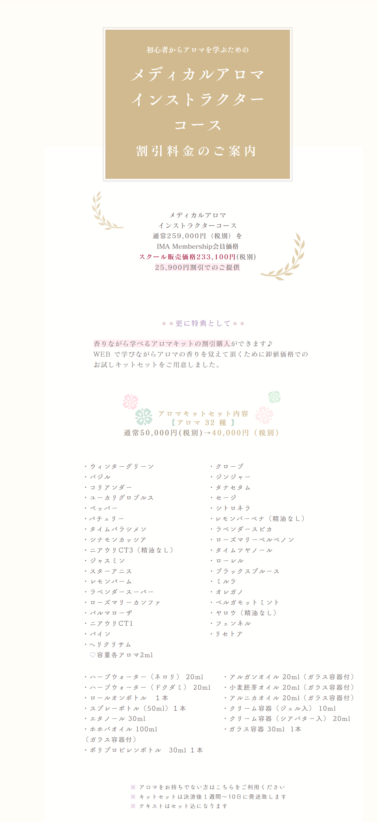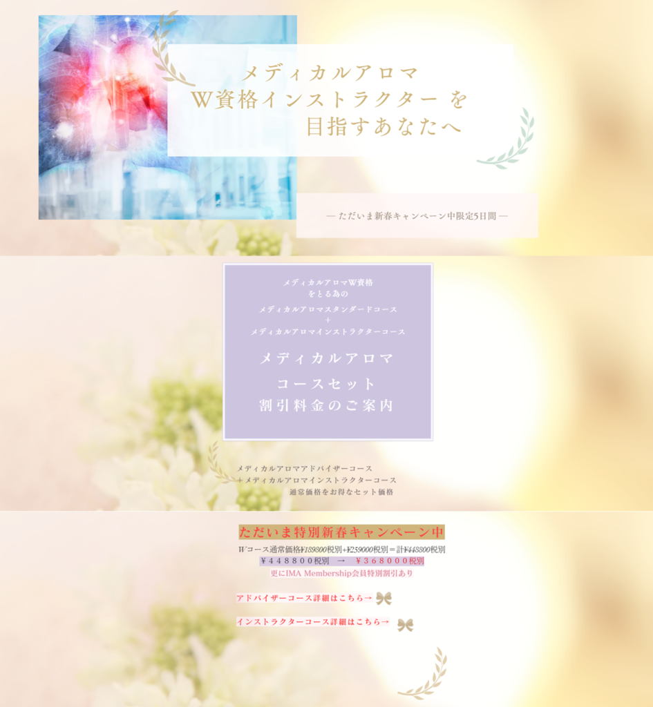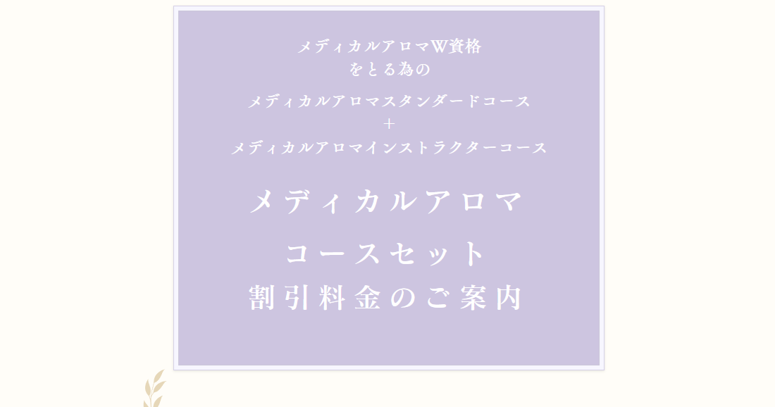 メディカルアロマスタンダードコースと、メディカルアロマインストラクターコースの同時受講は更にお得に購入できます♪
